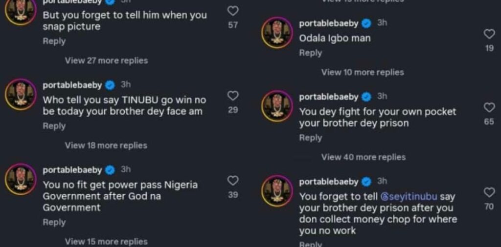Reacting in his comment section, Portable criticized the nightclub king for not confronting Tinubu directly during their one-on-one meeting.