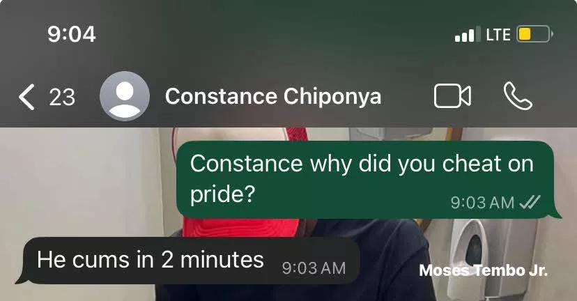 Zambia – A woman who recently married identified as Constance Chiponya has been divorced after she was caught sending inappropriate photos and pictures to other men.