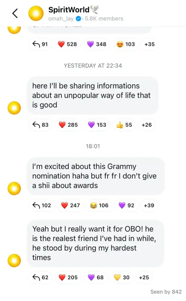 In a heartfelt post shared via his fan platform on Instagram, Omah Lay expressed excitement over the recognition but made it clear that awards do not define his musical journey.